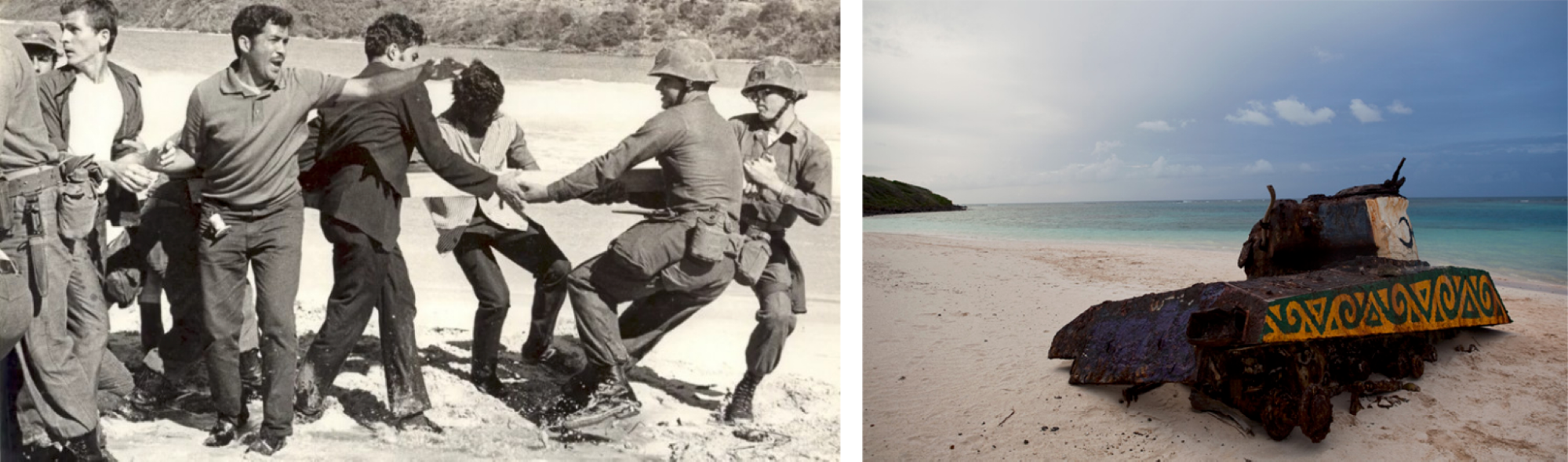 Locals protested nonviolently with marches and civil disobedience campaigns in the form of sit-ins and blockades, especially when the military attempted to evacuate the entire population in 1970 (figure 10.45 [left]). However, military exercises were also being conducted on the nearby island of Vieques, Puerto Rico. After more years of efforts of social movements and individuals across the political spectrum, the Navy agreed to phase out its use of the island as a testing ground.
